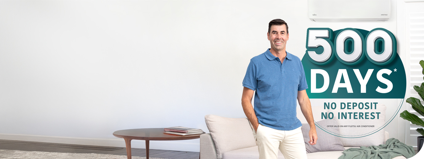Simply purchase any Fujitsu heat pump / air conditioner on Fujitsu’s Cool Finance and pay no deposit and no interest for 500 days*.